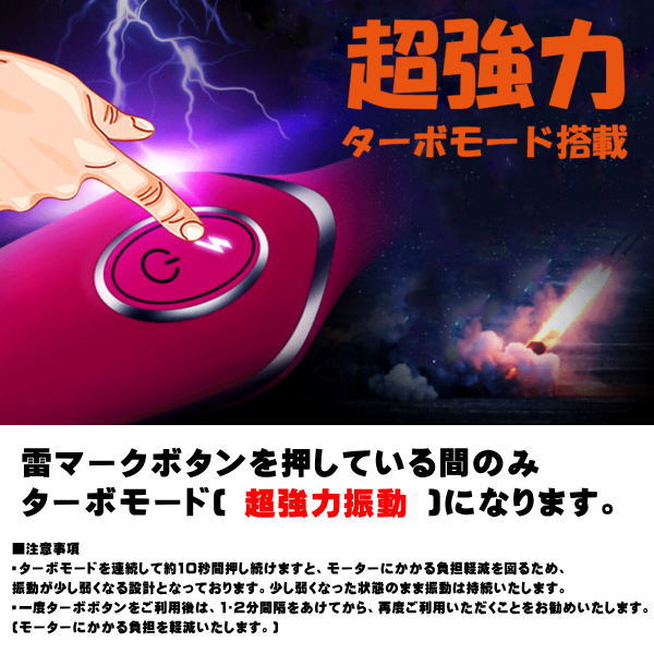 雷マークボタンを押している間のみターボモード(超強力振動)になります。