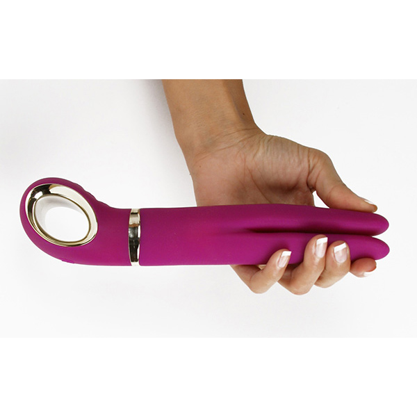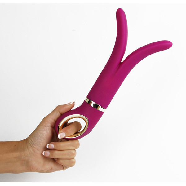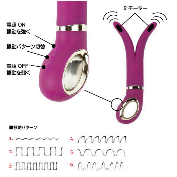 二股に広がる先端バイブレーション部分は柔らかく柔軟性があり、今までのバイブでは不可能だった女性のGスポットとPスポットを同時に刺激します。